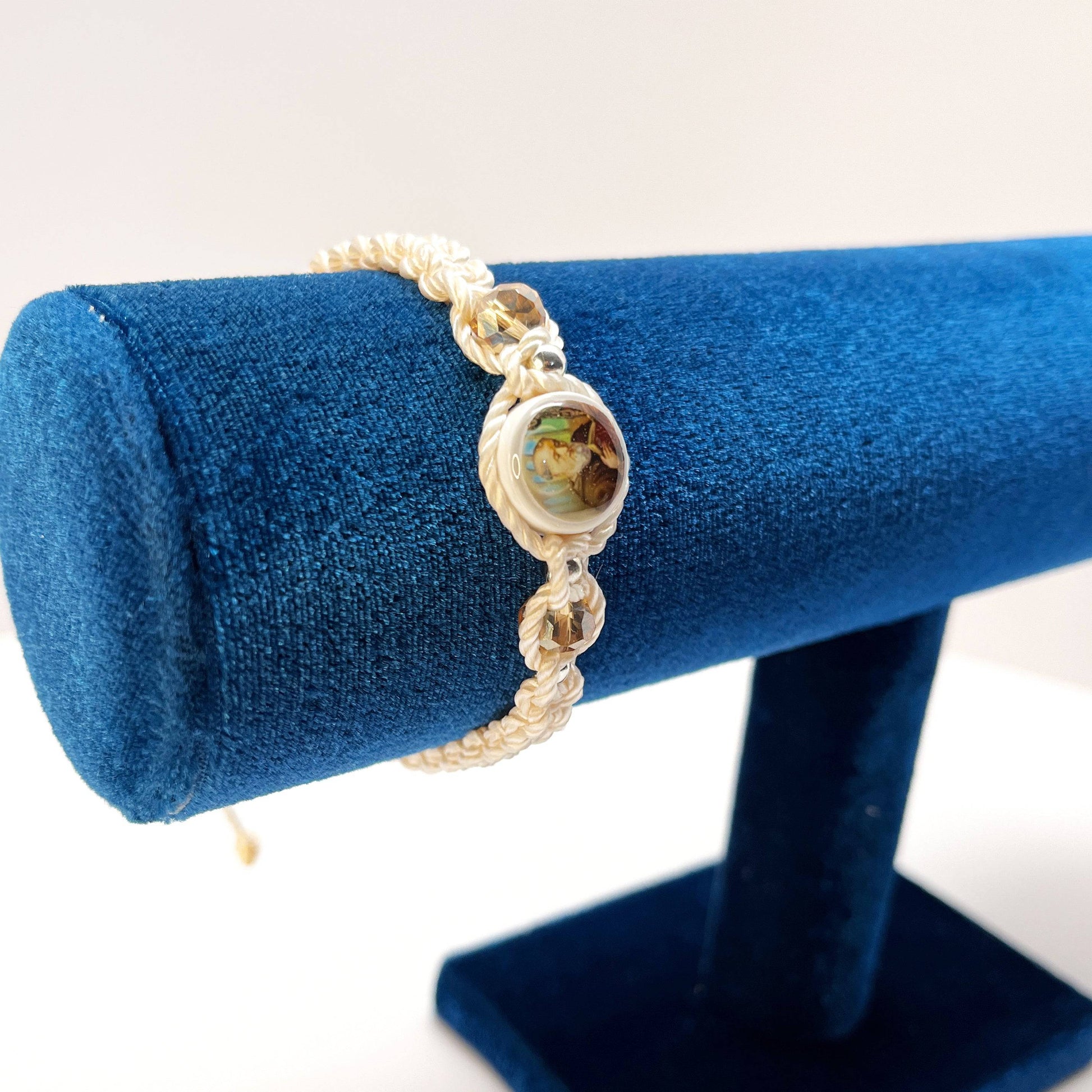 This elegant Beige St. Benedict Macrame Bracelet is a perfect combination of faith and style. Handwoven with durable beige cord, this bracelet features sparkling crystal beads and silver accents, adding a touch of elegance. At the center, a beautifully detailed St. Benedict charm serves as a powerful symbol of protection and blessings. The adjustable sliding closure ensures a comfortable fit for any wrist size. Ideal for daily wear, gifting, or as a meaningful religious accessory.